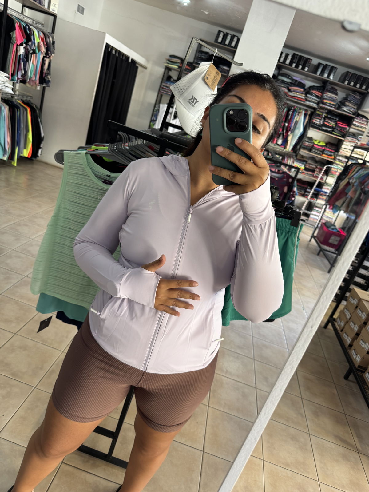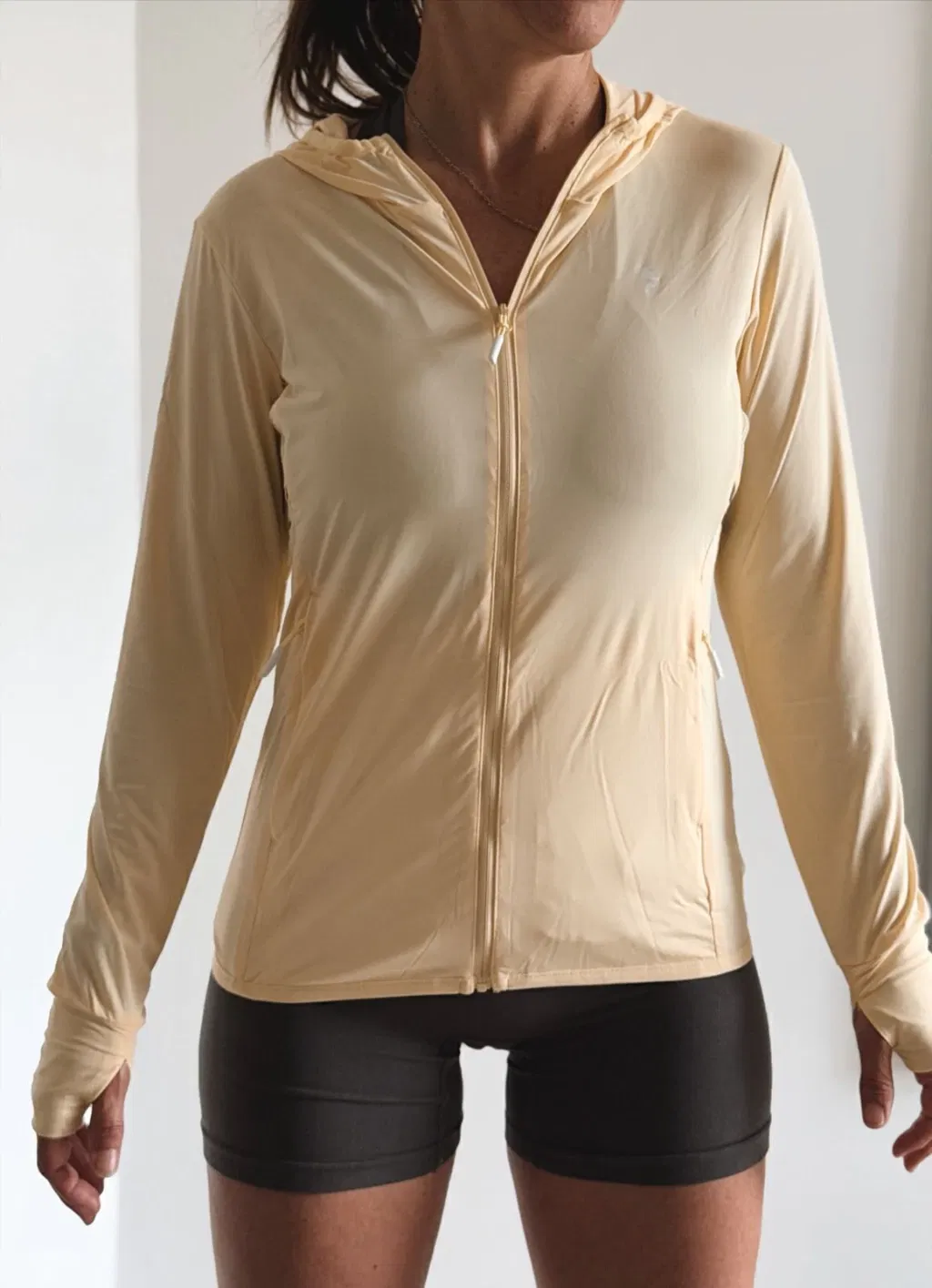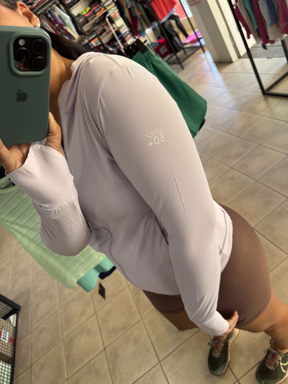 Es de microfibra con lycra y ademas tiene protección UV50.
