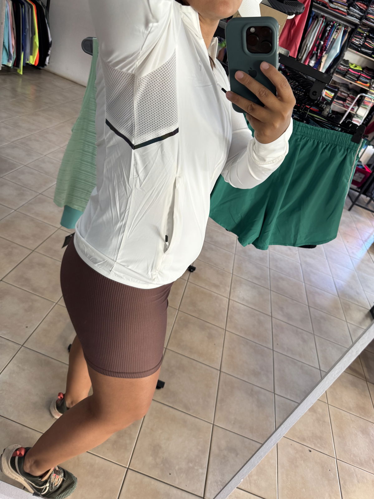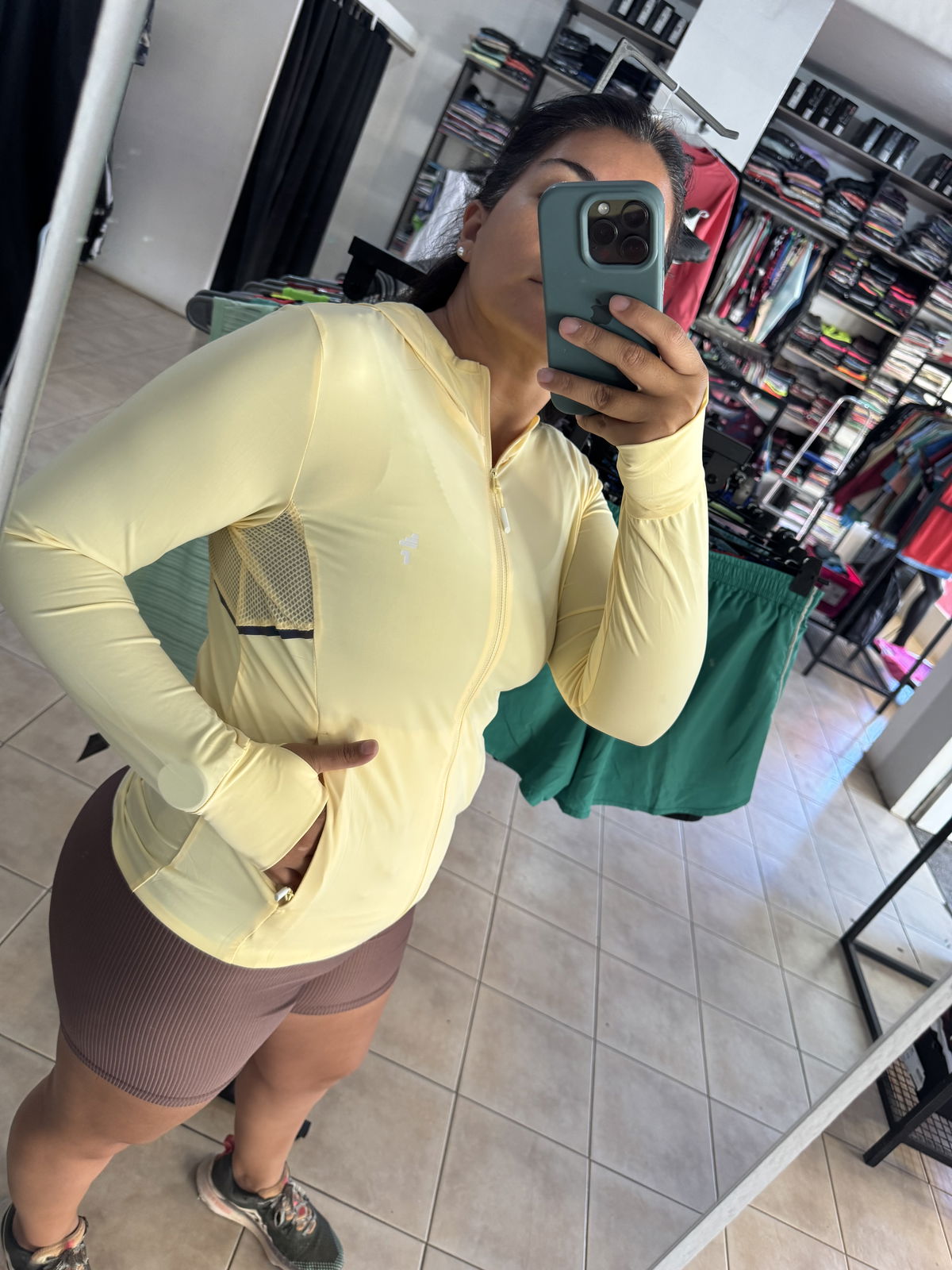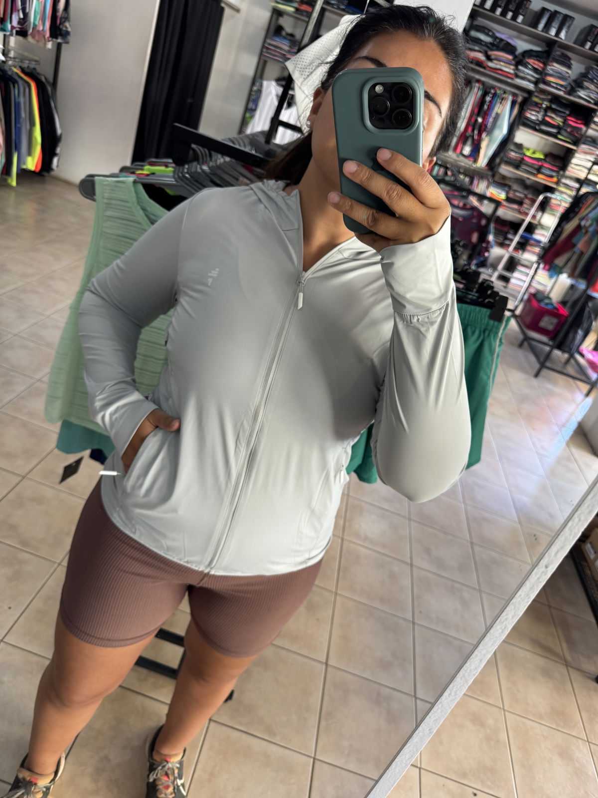 Es de microfibra con lycra y ademas tiene protección UV50.