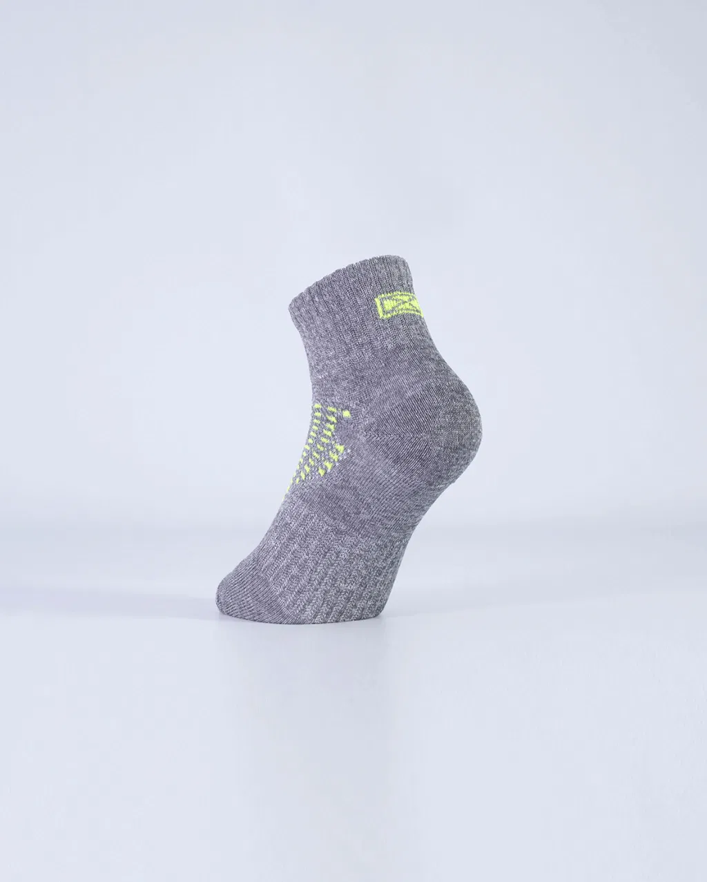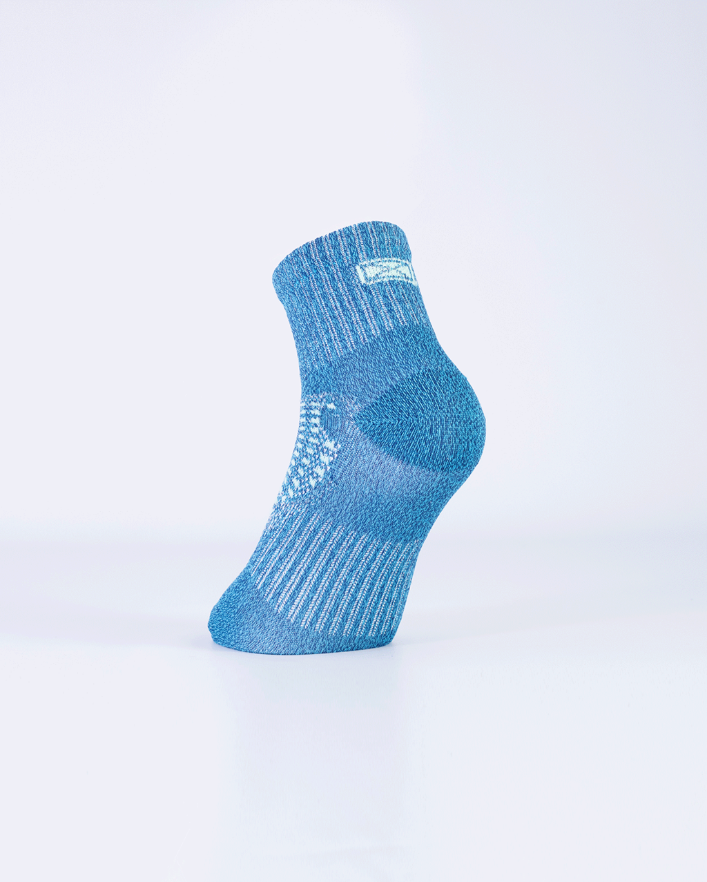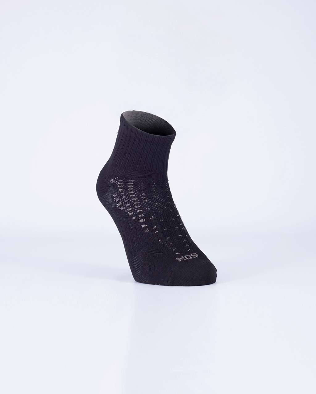 Puño doble elastizado, caña corta, pie liso con banda elástica, costura de puntera extra plana, talón y puntera reforzados.