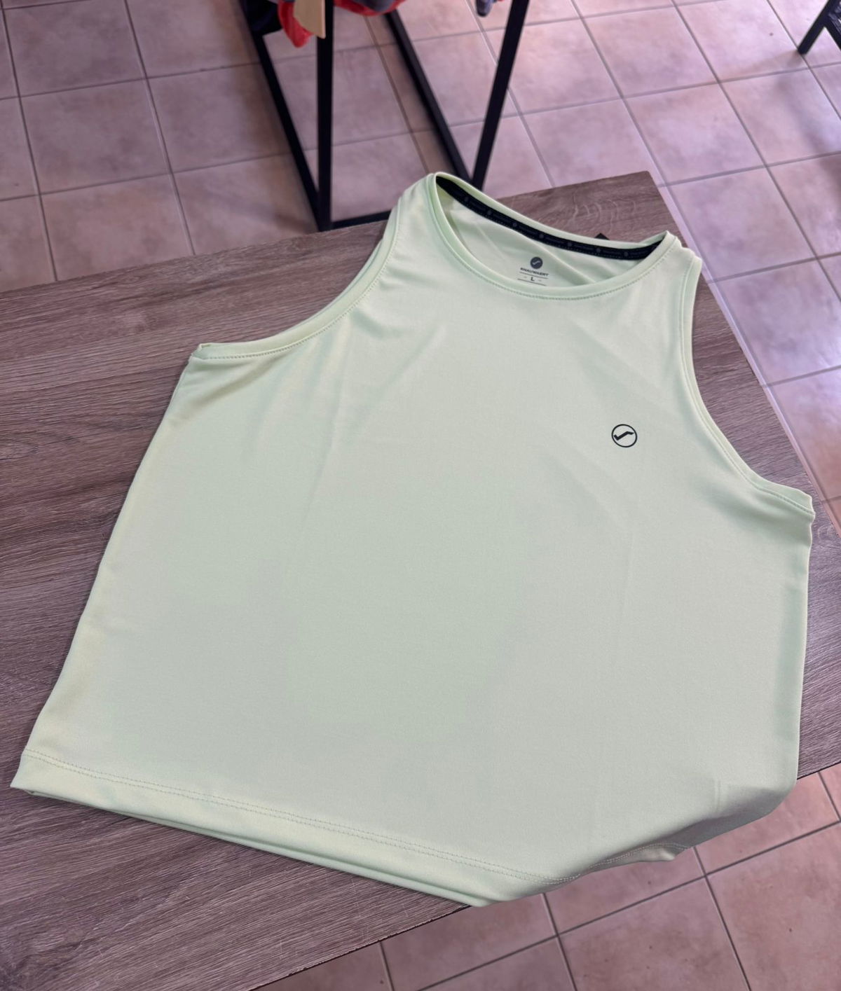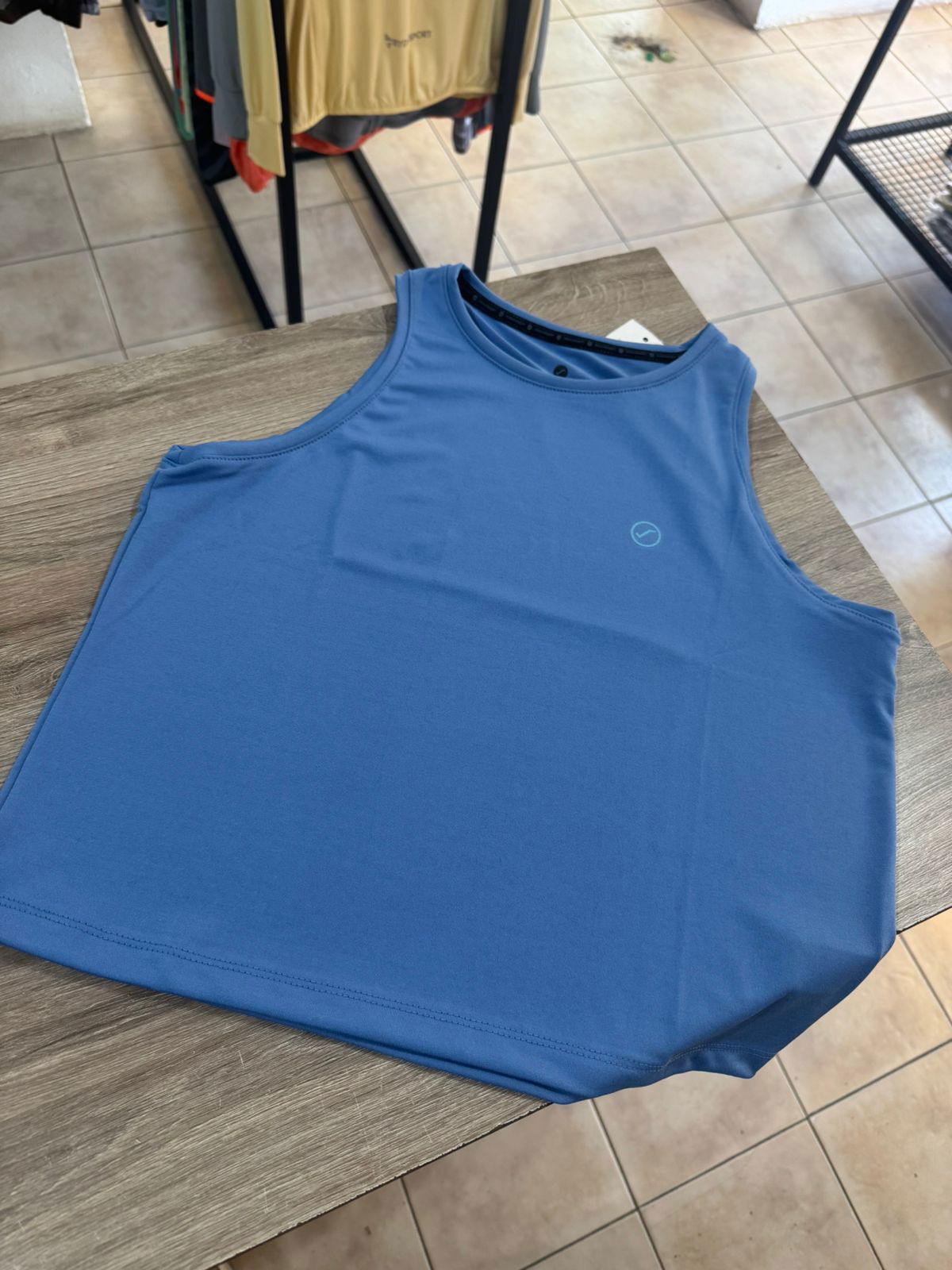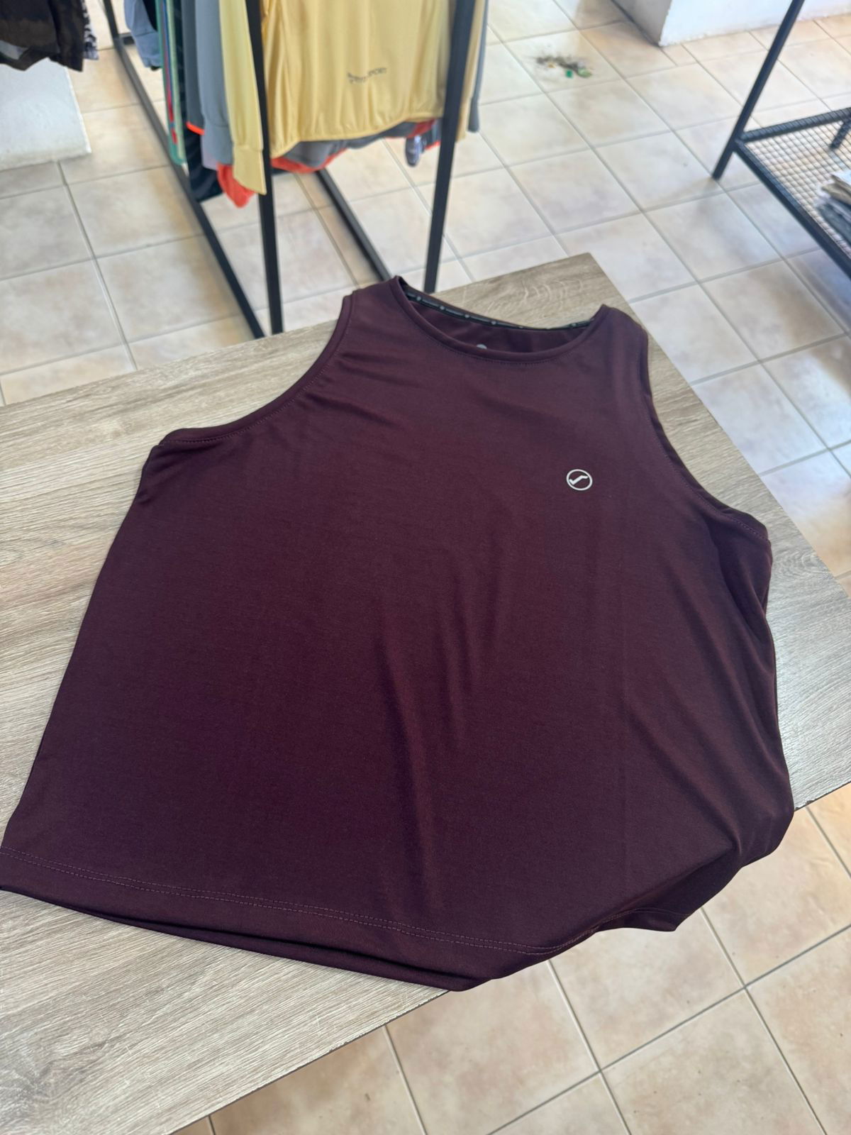 Una musculosa super versatil, su tela es lycra y su corte es corto y bien anchito.