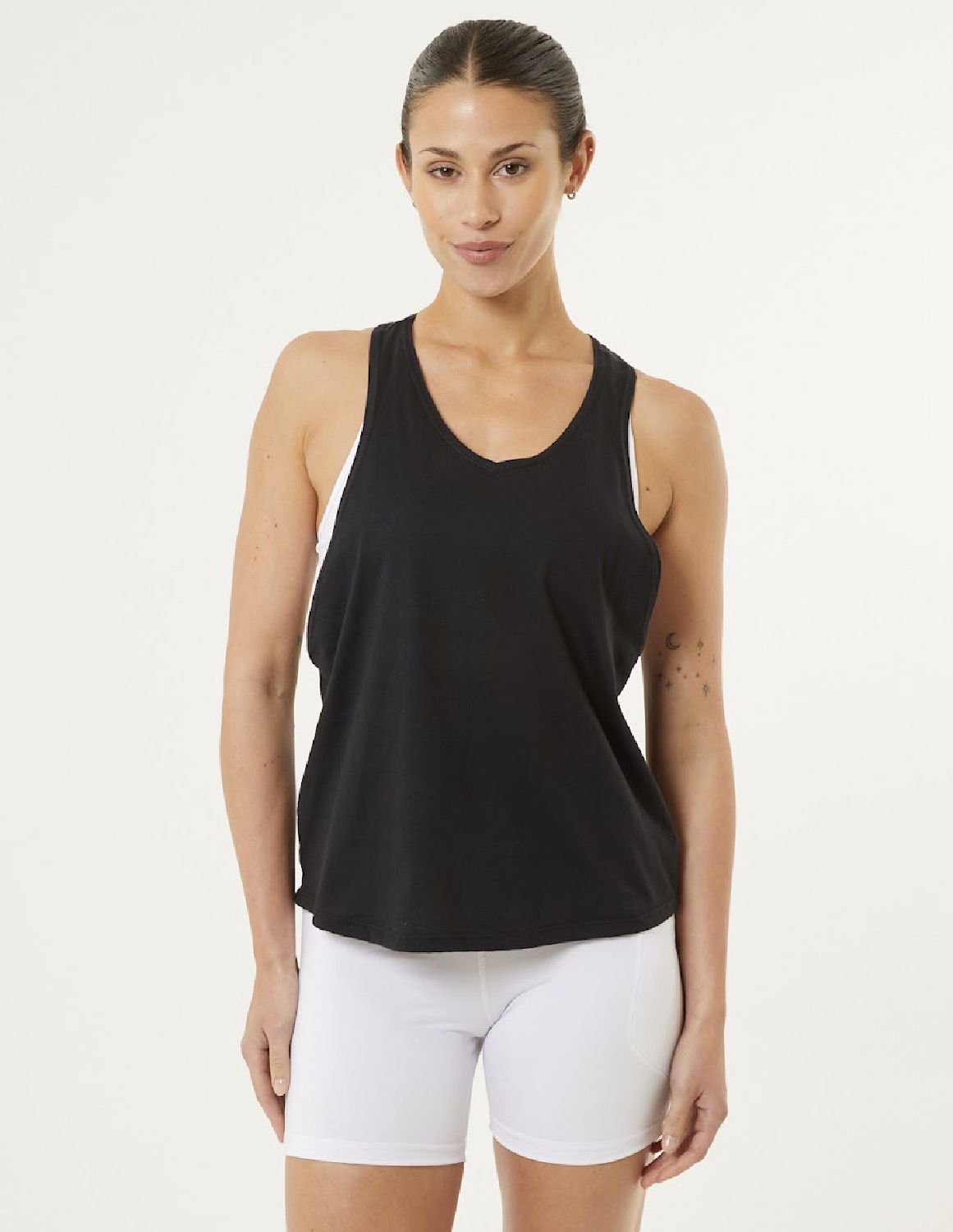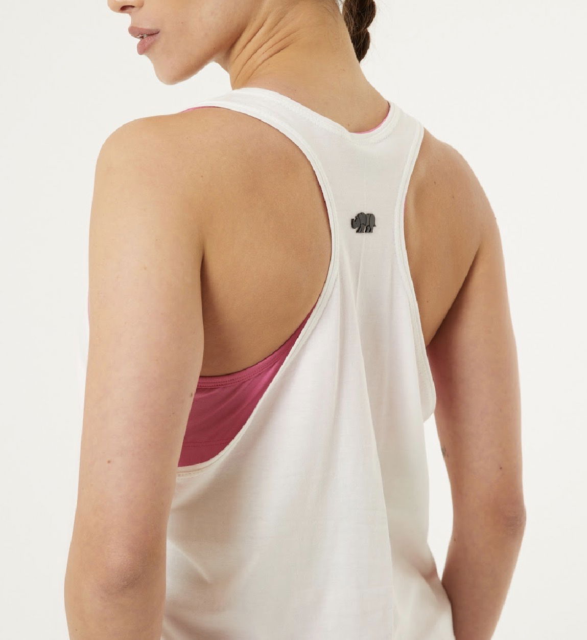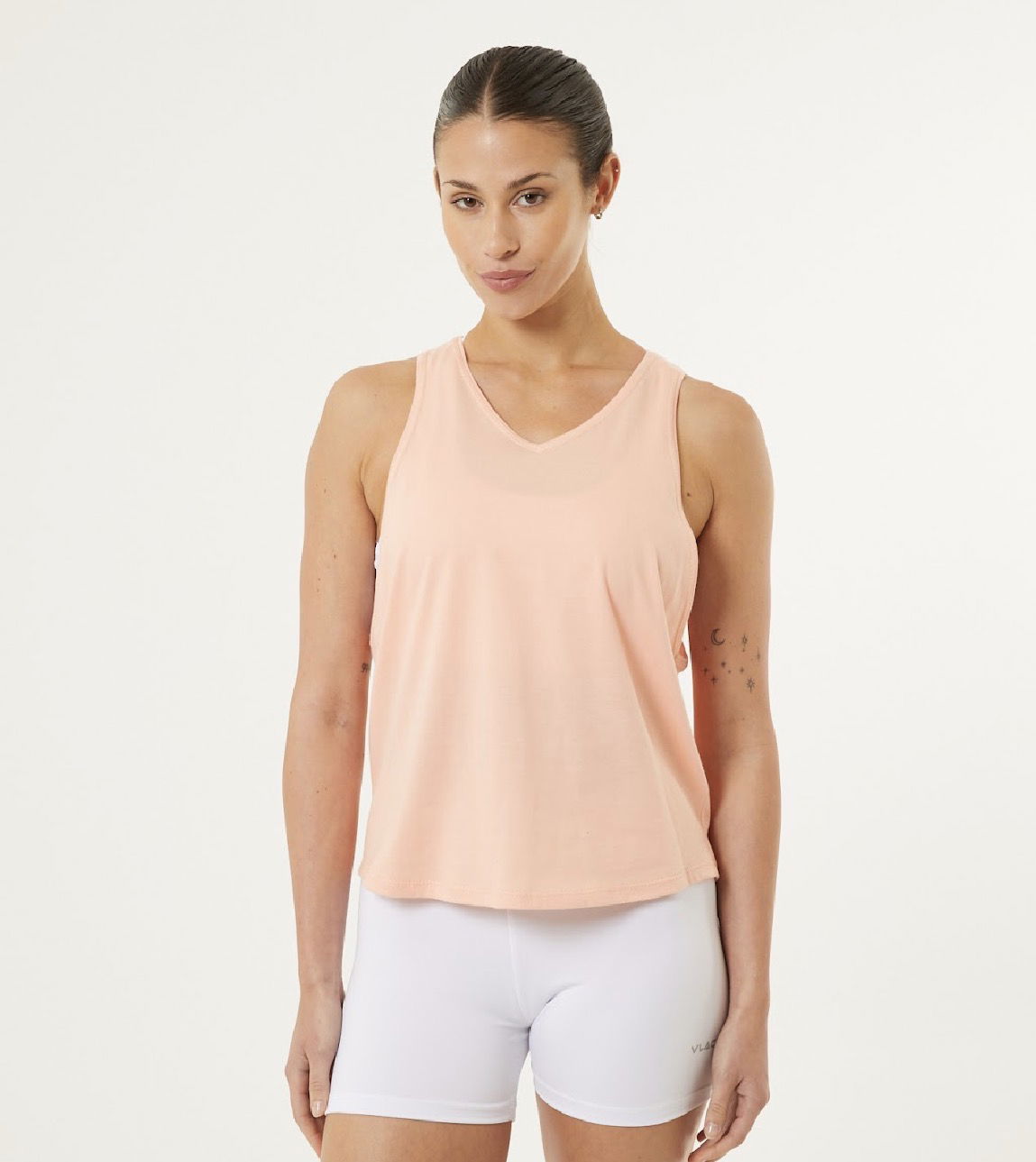 Musculosa de Jersey liviano, con sisas súper amplias que brindan frescura y comodidad. Contiene un escote en V. El cuello y las sisas están terminados con un pequeño vivo. En el centro superior de la espalda se destaca la aplicacion de marca en un vinilo 3D negro.