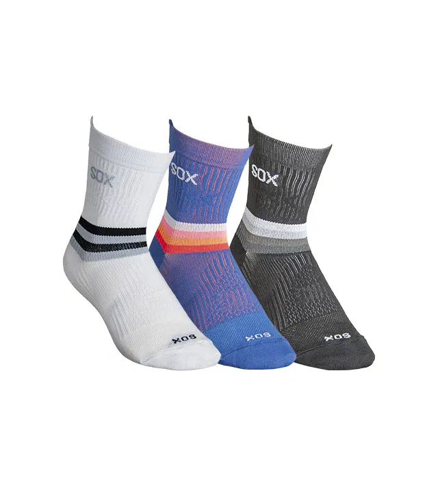 Puño doble elastizado, caña y pie anatómico. Tejido liviano y respirable. Costura de puntera extra plana, talón y puntera reforzados. Ajuste y calce perfectos gracias al agregado de Spandex. Secado rápido gracias a su composición.