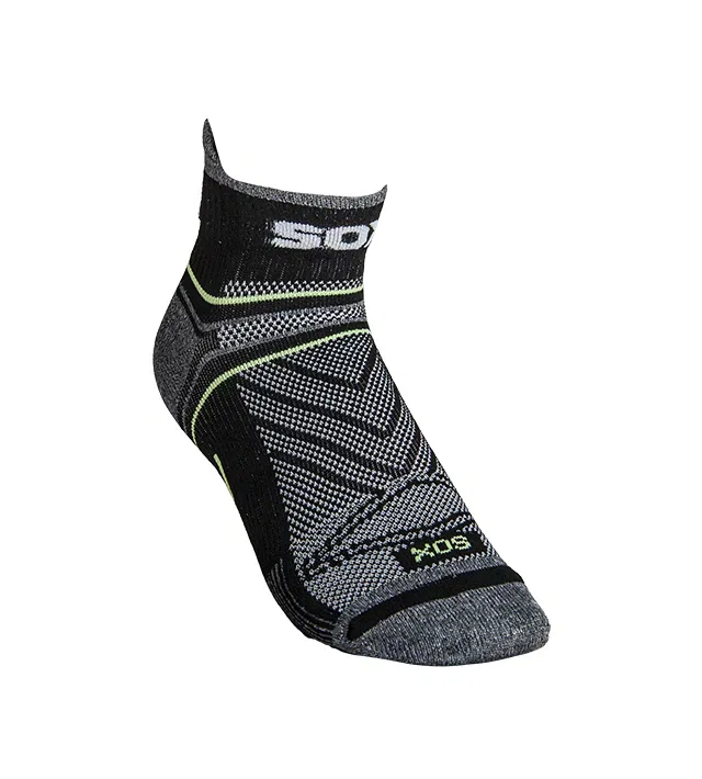 Puño doble elastizado, caña y pie anatómico. Tejido respirable, costura de puntera extra plana, talón y puntera reforzados. Ajuste y calce perfectos gracias al agregado de spandex. Secado rápido gracias a su composición.