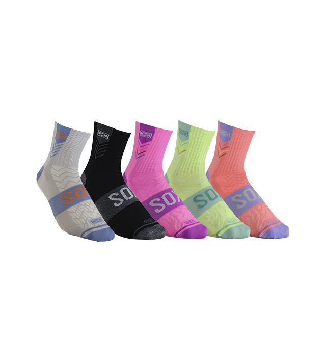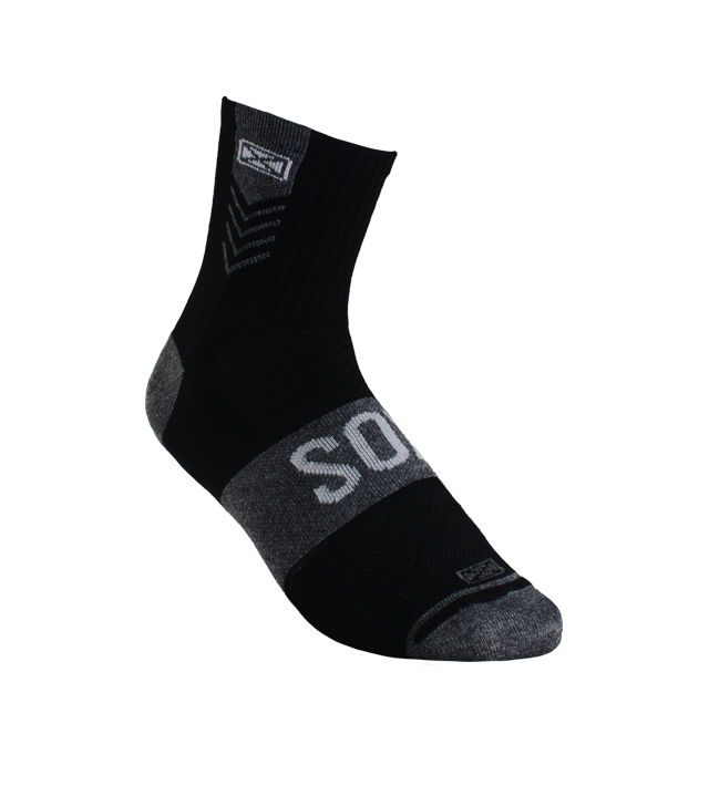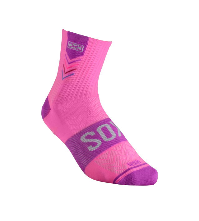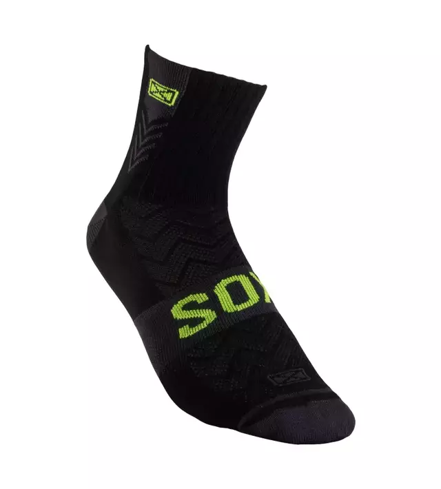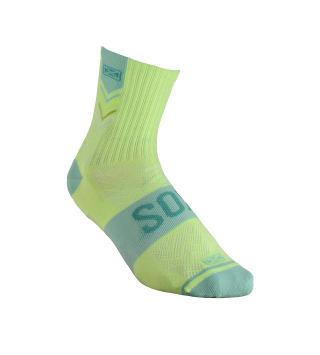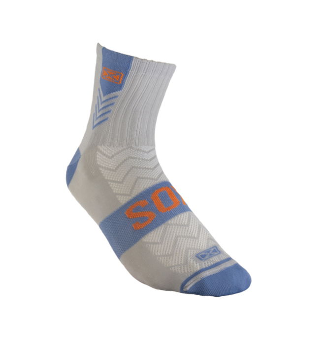 Puño doble, caña corta elastizada para lograr un calce perfecto. Sectores específicos de ventilación para evitar el calentamiento del pie. Costura de puntera extra plana, talón y puntera reforzados. Secado rápido gracias a su composición.