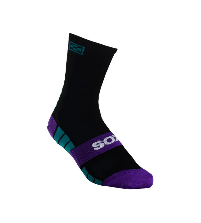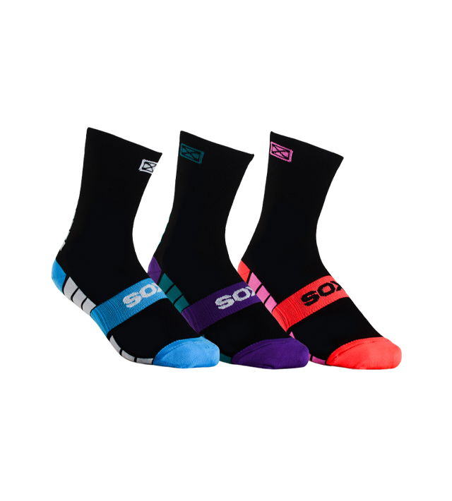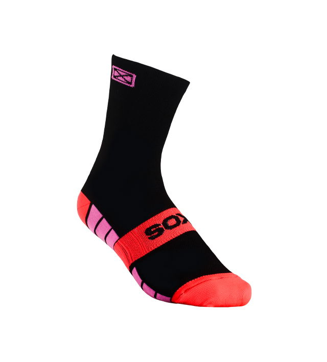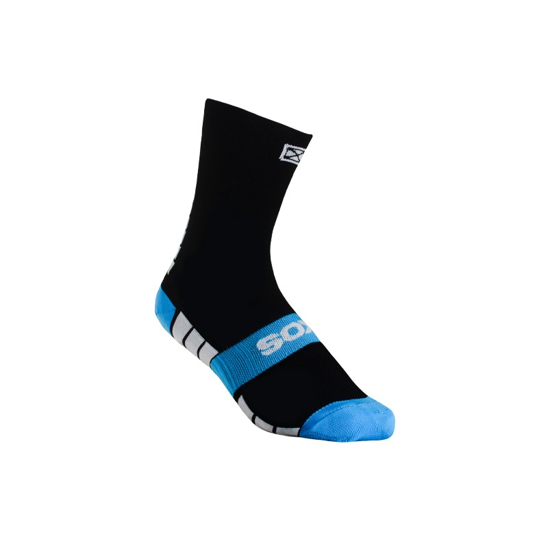 Puño doble elastizado, tejido liso, banda elástica en el pie para mejor sujeción, zona de ventilación en caña y pie para mantenerlo seco. Costura de puntera extra plana, talón y puntera reforzados. Ajuste y calce perfectos gracias al agregado de spandex. Secado rápido gracias a su composición.