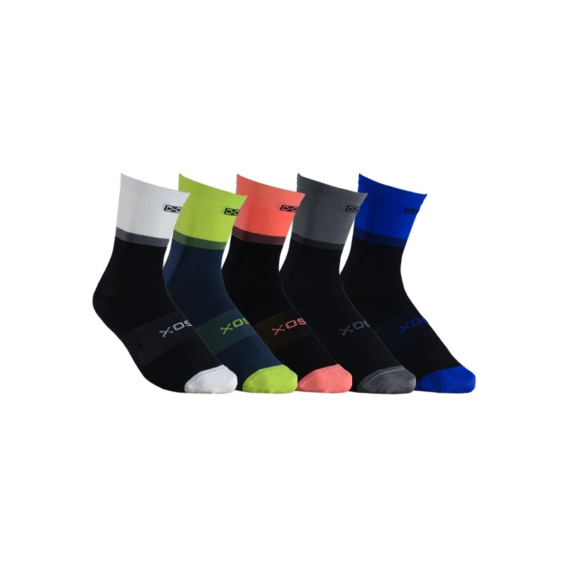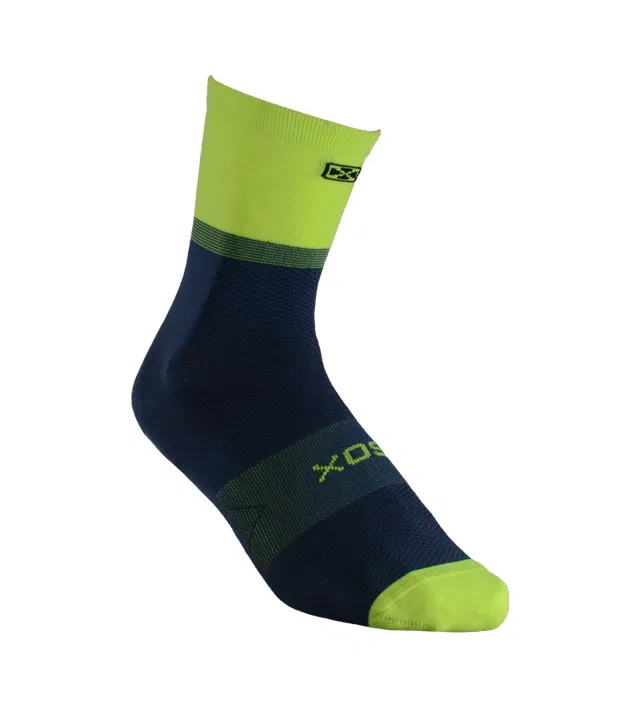 Puño doble elastizado, tejido liso, banda elástica en el pie para mejor sujeción, zona de ventilación en caña y pie para mantenerlo seco. Costura de puntera extra plana, talón y puntera reforzados. Ajuste y calce perfectos gracias al agregado de spandex. Secado rápido gracias a su composición.