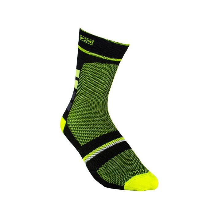 Puño doble elastizado, tejido liso, banda elástica en el pie para mejor sujeción, zona de ventilación en caña y pie para mantenerlo seco.