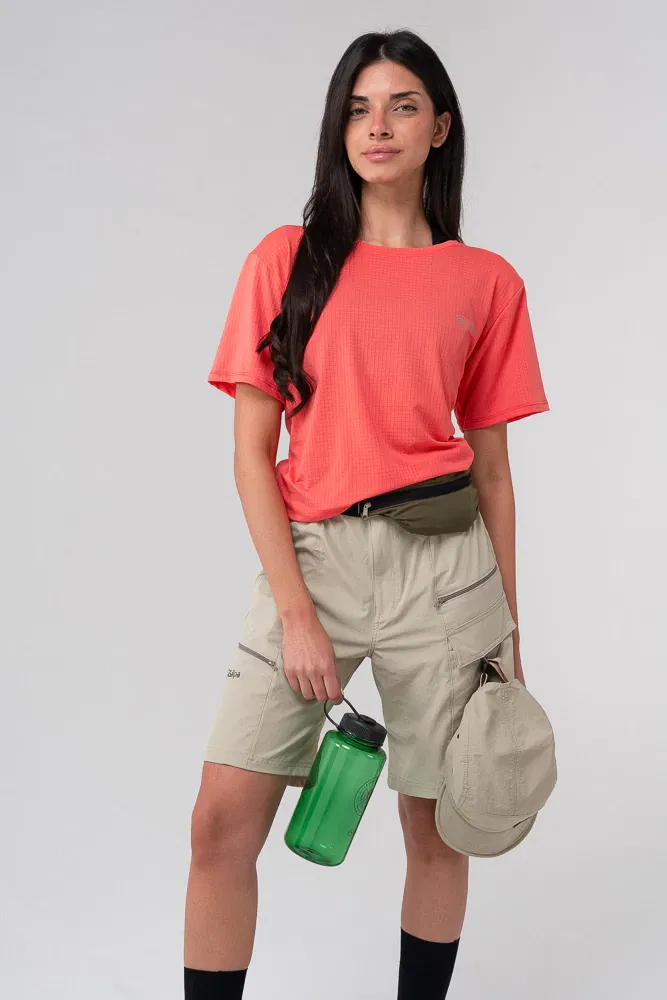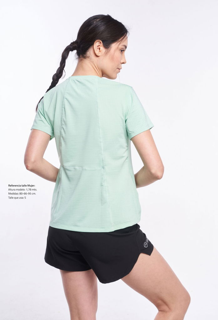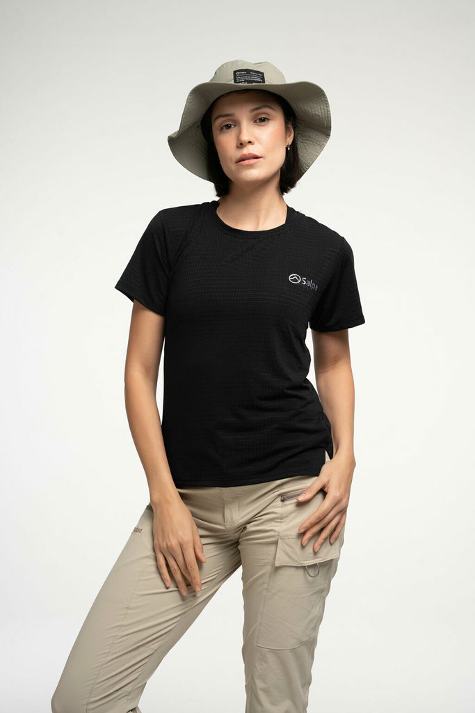 Diseñada para mantenerte fresca y cómoda mientras disfrutas de la vida al aire libre, esta remera presenta un corte “A” con detalles en forma de vistas en su delantero que generan mayor amplitud y libertad de movimiento.