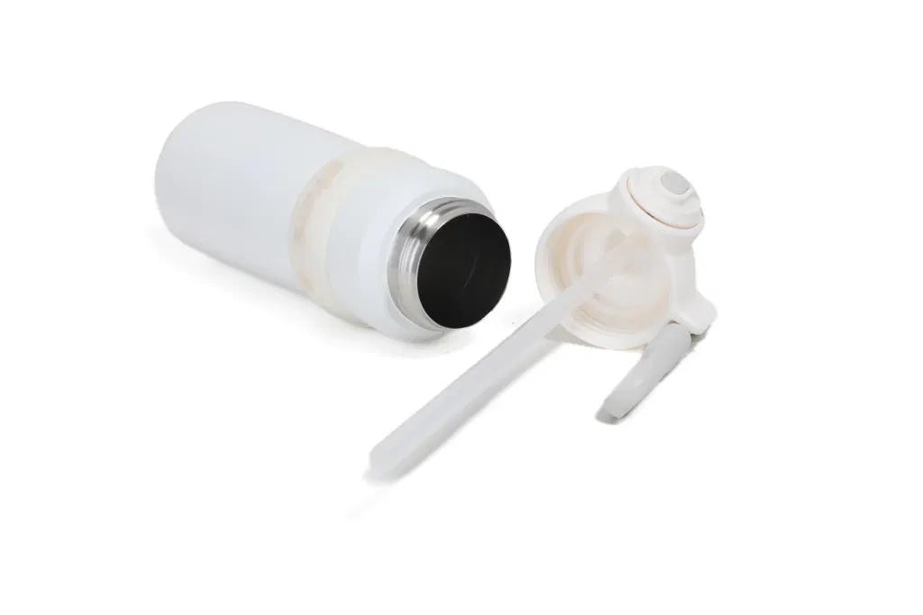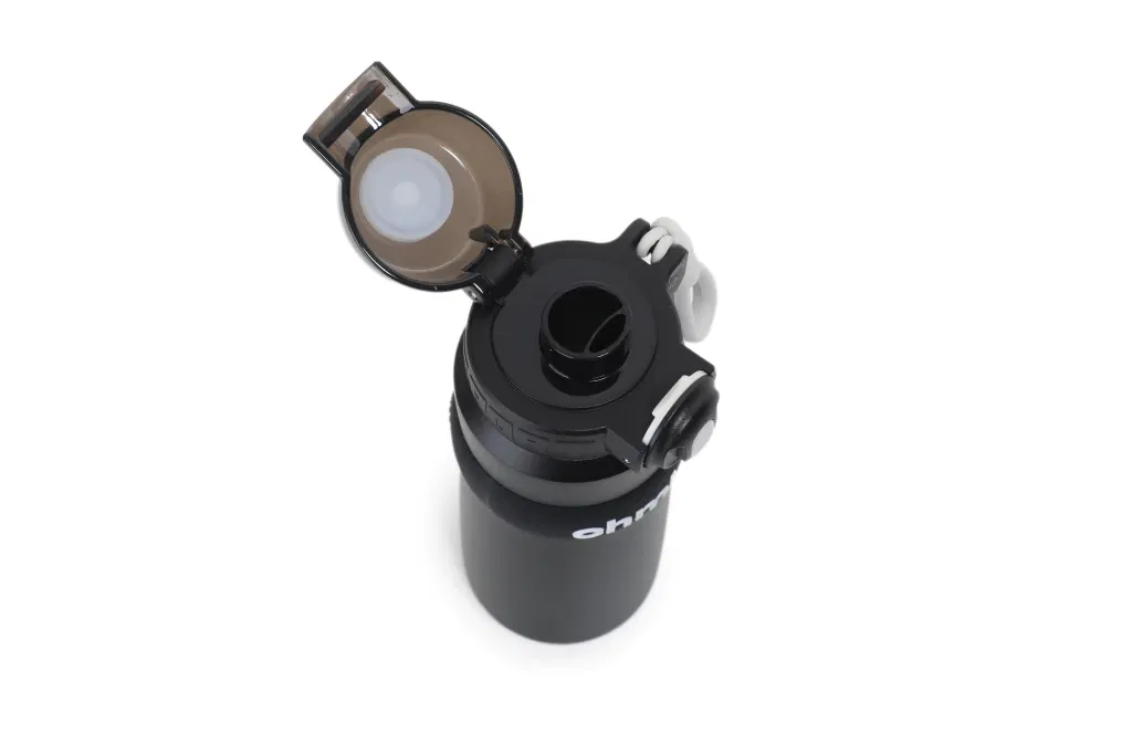 Tapa con traba de seguridad, boquilla oculta y botón de apertura automática.